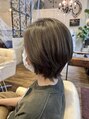 頭の丸みを綺麗に残しつつ襟足はしっかりとクビレを出す定番のウルフカットカラーは全体をブリーチで色を抜いて濃い目のグレージュをカラーでのせました◎