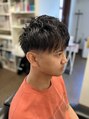 回りを2ブロックで刈り上げてトップは前下がりに切りました