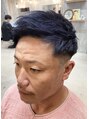 フェードアップバングスタイル!刈り上げがすぐに伸びてきてしまう方にオススメです。カラーは、ブリーチをして暗めのブルーを入れています!濃いめにカラーを入れることで色落ちが綺麗です!