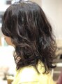 パーマの動きを出すためにスライドカットで髪を軽くしながらカットして、大人可愛い動きを作っています。パーマは低温デジタルパーマで緩く。担当させていただく事で気をつけていることは小顔に見えコンパクトな形と似合うバランスで仕上げる事です。
