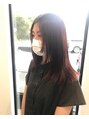 レッドブラウンカラー☆パツッと切ったラインがお洒落な切りっぱなしレイヤースタイル。