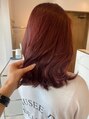 ブリーチありのピンク系カラースタイル☆レイヤーをほぼ入れないぷるんとしたスタイル◎