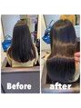 縮毛矯正も経験がなく自分の髪が艶がなくまとまりにくいのが嫌で髪質改善に興味があり,グーグルで調べて初めての来店。真っ直ぐになりたいわけではないが簡単に乾かすだけでまとまりやすい酸性縮毛矯正をオススメしました。