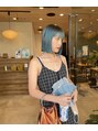 切りっぱなしボブとペールブルー。肌に合うブルーが可愛いんです♪ ブリーチは2回必須です。