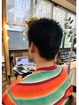 全体を同じ長さくらいで短めにした、ベリーショートスタイル。少しだけ長さを残したもみあげと襟足がアクセントになってくれます。スタイリングも楽な、潔いスタイルです。短いながらも、毛流れや束感が出るようにカットさせて頂きました。