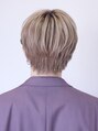 サイドは長めの2ブロック、トップは長めのマッシュベース。襟足は前から少し見えるくらい長めに残して柔らかい雰囲気になるようにカット。今トレンドの韓国風ショートとハイトーンカラーでオシャレなスタイルに。