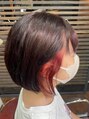 インナーカラーピンクイヤリングカラーチェリーピンク美髪ミニボブ