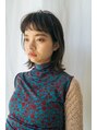 切り込んだ前髪が特徴のウルフボブです。カラーはナチュラルなグレージュカラーで透明感のあるカラーに。