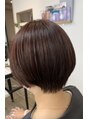 潰れやすい細いかみでも、ボリュームのあるショートボブイルミナカラーで、赤みを出しても重くなり過ぎずツヤのある軽い質感に仕上げています。