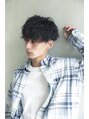 前下がりマッシュのベースにランダムに動くように、スパイラルパーマをかけたスタイル。サイドと襟足は短すぎない長さで刈り上げ。強すぎないスパイラルパーマをかけて無造作な質感。ワックスつけるだけで形になるくらい、セットが簡単にヘアスタイル!