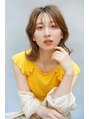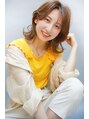 レイヤーを入れふんわりと動くように。34mmのコテで毛先は外ハネ、頬ラインは膨らませてくびれのあるスタイルに。クリアベージュカラーで肌を明るく。トリートメントクリームを手になじませ全体的に揉みこむ