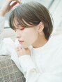 マッシュ風のショートボブで、耳にかけるだけのシンプルなスタイル◎柔らかく見えるような赤味を消したオリーブベージュカラー◎