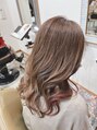 インナーブリーチあり!根元は明るい白髪染め、インナーはピンク、毛先はベージュの3つのカラーで染めました。イヤリングカラーのピンクは風で動いた時にチラッと見えて、さりげない可愛いさを演出してます。カウンセリングを大切にしています。張 明星