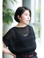 前髪と毛先にカールをつけた夏でも重く見えない女性らしいスタイルです。