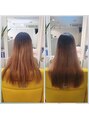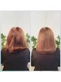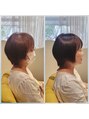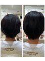 本日髪が硬めでボリュームがでやすく汗を頭にかきやすくボリュームが更にでてしまうのが悩みで前髪ははぱっかり分かれてしまうことは諦めていらっしゃいました