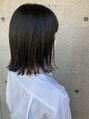 肩ラインの切りっぱなしボブ縦ラインの強調された長さなので、横に広がって見えたくない方短くしたいけど、ギリギリ結べる長さで!そんな方におすすめなデザインです。