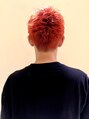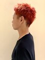 一度ブリーチしてオンカラーで濃いめのオレンジを入れたメンズショート夏らしいカラーで目を引きます。