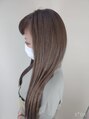 150gのエクステです。内側に暗いエクステを80g外側にベースと同じ明るいエクステを70gです。指でとかすとスジ感が出てとてもオシャレです。しかもローライトなので落ち着きのあるスタイルです。