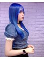 モノクローンの、くつしたちゃんです。インナーをブルーアッシュ、全体をビビットなブルーにしました。