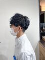 ツーブロック、刈り上げを入れショートマッシュにしています!カラーはブリーチ毛をブルーブラックにしています!ブルーブラックはどれくらい青みを出すかによりますが、一度明るくしてから入れるのがおすすめです!
