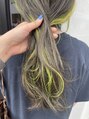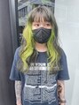 表面はブリーチなしのオリーブカラーでインナーはブリーチ2.3回ほどしており発色の良いネオングリーンにしました。表面とインナーの色合いがマッチしていて可愛いです!