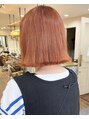 ブリーチ後のオンカラーにオレンジベースにピンクを少し足して染めました!夏にピッタリ、元気いっぱいカラーです♪カットは切りっぱなし風ボブです(^^)