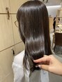 赤みを取るオリーブを混ぜた落ち着いたブラウンベージュカラーです。暗めなのでツヤ感も増し増しです◎カットもロングが綺麗に見えるようなレイヤースタイルがオススメです。