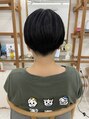 前下がりのハンサムショート。首元は刈り上げグラデーションですっきり、よりクール感があるように仕上げてます。黒髪との組み合わせも良く、どんなファッションとも馴染みやすいショートヘア。