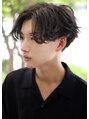 毛先にカーリーな束感を出し、流行りの重めセンターのフォルムに軽やかな動きと質感をプラス。ネープはやや高く刈り上げ、ハイウェイトからの前下がりにすることで、長めの前髪でも爽やかな印象に!