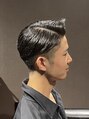 強いくせ毛の持ち主さん。ツーブロックショートをベースに七三分け×オールバックに自然な流れをつけたスタイリングで、フォーマルな場でも魅力的に映えます。クラシックなスタイルに現代風アレンジを取り入れた、大人の色気と魅力が際立つスタイルです。