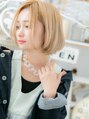【スタイルは★ブックマーク★が便利】個性的なハイトーンカラーは、かきあげ前髪とAラインのワンカールボブでソフトな印象に。韓国風マッシュボブやミニボブ、大人ボブ等からのイメチェンに。くびれミディやウルフもトレンド(メイク担当COVERHAIRGROUP棟方)