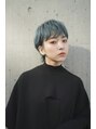 襟足のある耳掛けショートはウルフカットのベースになっています。前髪がワンカールで眉毛くらいなのがポイント!サイドを耳にかけた時に前髪の横が丁度いい位置に流れてくれます。カラーはブリーチ後にペールブルーとほんのりシルバーで仕上げています!