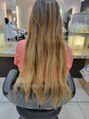 - バレイヤージュ後ハイライトオンカラートリートメント超音波