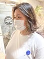 似合わせカットで抜け感たっぷりニュアンスウェーブでアンニュイな雰囲気漂うミディアムスタイルに。カラーは透明感あるブルージュを。ワックスをつけて束感やウェット感を出したヴェールウェーブでスタイリングで遊ぶのもオススメです。