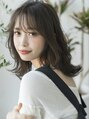 暗めでも透明感があるダークグレージュカラーとやわらかいゆるパーマで大人かわいいテイストに仕上げたミディアムレイヤースタイル。丸みとくびれのシルエットと透け感があるフェザーバングがデザインポイントです。