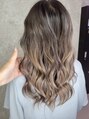 ミルクティーグレージュ×ミディアムレイヤー×ウェーブ