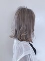 前下がりの外ハネスタイルにする事でカジュアルすぎない大人の外ハネスタイルに♪クールさとカジュアルさをミックスしたイケてるスタイルに^^色味はホワイトグレージュ♪