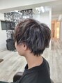 マッシュウルフにセクションカラーでアクセントを。スタイリングはアイロンで波打ちがおすすめ。