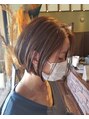 オリーブアッシュで赤みを抑えたヘアカラー。柔らかい質感が出ます。カットは後ろには少し丸みを出して緩やかな前下がりで顔周りはフィット感。扱いやすいヘアスタイルでオススメです(*^^*)