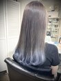全体アッシュ系カラー+毛先は青テールカラーで、オシャレに仕上げています。