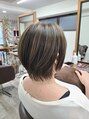 耳かけでニュアンスが変わる2wayショート。カラーはオリーブベージュにローライトをミックス。立体感のあるカラーリングが◎☆