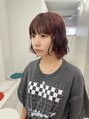 ブリーチなしのダブルカラーで明るくしたベースを生かして、ワンカラーで赤に!地毛の明るさからよりも一度明るくした方が高発色に赤味が出てくれます♪