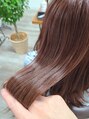 オレンジ系カッパーブラウン。退色して10レベルくらいになったベースにワンカラーでカラーリング。暖色系の色味は巻き髪と相性抜群◎☆