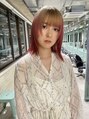 ピンクのルーツカラーで攻めすぎないスタイルにしました。根本をベージュで残す事で、毛先の原色に寄ったピンクも和らぎます。カットは、顔まわりを切り込んだスタイルにしました。