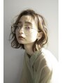 重く見えないミディアムスタイル。中間にくびれをつけて顔まわりがスッキリ見える様に。カラーは透明感のあるハイトーンのカーキベージュ!