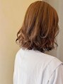 肩にあたるくらいのミディアムボブに、毛先にウェーブパーマをかける事でふんわり動きのあるスタイルに!カラーはベージュブラウンで柔らかく。