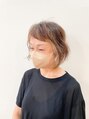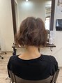 ご要望老け見えしたくない/襟足は見えない方がいい/顔回りの長さは欲しいパーマスタイルがだいぶ伸び、下方に重さが出てしまっている為余計にトップがぺタっとみえがちにステップボーンカットで骨格とボリュームのバランスを整え、ふんわり前下がりボブに