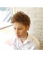 サイドは、すっきりと刈り上げ、束感が出やすいようにカットしてます!!カラーは、ブリーチをしてベージュアッシュに♪スタイリングは、前髪にかけて動きが出るようにWAXとグリースをなじませてます。