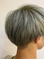 ブリーチ有りのダブルカラーです。色はカーキアッシュで、明るめに染めています。ブリーチをしているので、透明感と発色がup♪
