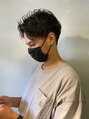 スタイリングしやすいセンターパートのパーマスタイルです。